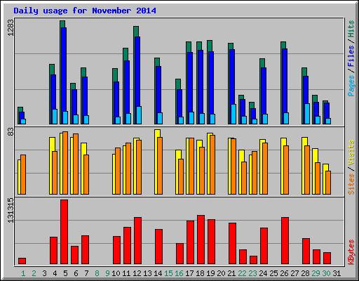 | Day | Hits | Files | Pages | Visits | Sites | KBytes | ||||||